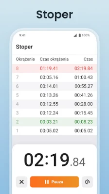 Ale Minutnik + Stoper do Cwiczen to znacznie więcej niż tylko zaawansowane liczniki. Wbudowany, precyzyjny stoper to idealne narzędzie dla sportowców, entuzjastów fitnessu oraz każdego, kto wymaga niezawodnego mierzenia czasu z dokładnością do milisekundy. Funkcja okrążeń umożliwia szczegółową analizę postępów, a czytelny wyświetlacz gwarantuje, że nigdy nie przeoczysz kluczowego momentu. Przełączanie się między minutnikiem a stoperem jest intuicyjne i odbywa się za jednym dotknięciem, zapewniając płynność w dynamicznym środowisku.