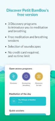 Czy pragniesz odnaleźć spokój przed snem, poczuć większą jasność umysłu w ciągu dnia, czy też lepiej zrozumieć i zarządzać swoimi emocjami? A może po prostu szukasz nowych ścieżek rozwoju osobistego? Aplikacja Petit BamBou powstała właśnie po to, by towarzyszyć Ci w pielęgnowaniu zdrowia psychicznego i osiągnięciu wewnętrznej równowagi. Jesteśmy dumni, że Petit BamBou to ceniona w Europie platforma do medytacji i ćwiczeń oddechowych, która wspiera miliony osób w dążeniu do bardziej świadomego i harmonijnego życia.