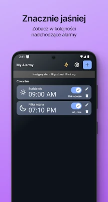 Simple Alarm to coś więcej niż tylko narzędzie do budzenia. Unikalna funkcja sortowania alarmów według kolejności ich wywołania sprawia, że możesz traktować go jak osobistego asystenta zadań. Z łatwością zidentyfikujesz, co czeka Cię w ciągu dnia, używając Simple Alarm do przypominania o ważnych terminach. A gdy nadejdzie czas, aby opuścić krainę snu, Simple Alarm zadba o Twoje spokojne przebudzenie. Zamiast nagłego, głośnego dźwięku, aplikacja stopniowo zwiększa głośność alarmu, delikatnie wyprowadzając Cię z głębokiego snu. Pożegnaj się z szokiem i stresem o poranku!