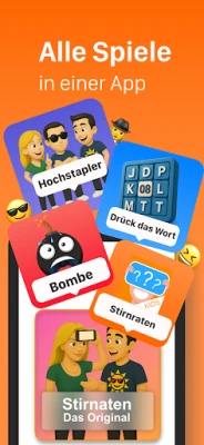 To jednak dopiero początek! W **Stirnraten** czeka na Ciebie znacznie więcej unikalnych gier, gwarantujących godziny świetnej zabawy. W „Hochstapler" każdy gracz otrzymuje hasło, z wyjątkiem jednego – oszusta, który musi sprytnie udawać, że zna odpowiedź, nie zdradzając swojej niewiedzy. W „Bombe – czas ucieka" pojawia się kategoria, a gracze na zmianę podają pasujące pojęcia i przekazują urządzenie dalej. Kto będzie za wolny, u którego bomba „wybuchnie", ten przegrywa! A w „Wortverbot" (Słowo zakazane) zespoły ścigają się, aby wyjaśnić hasło, unikając jednocześnie zakazanych słów. Każde odgadnięte słowo to punkt dla Twojej drużyny!