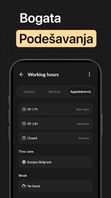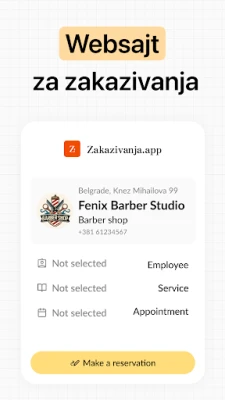 Zarządzaj swoim biznesem bez wysiłku! Ta aplikacja umożliwia właścicielom łatwe ustawianie godzin pracy, dodawanie usług, cen i pracowników. Śledź wszystkie nadchodzące terminy oraz otrzymuj powiadomienia w czasie rzeczywistym o rezerwacjach i anulacjach. Klienci wygodnie rezerwują wizyty przez dedykowaną stronę internetową.